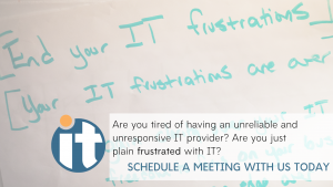 At The IT Company, we eliminate the frustrations being felt by business leaders who are struggling with an IT provider who has become unreliable, unresponsive and unable to scale with their business. We become their IT department so they can stop wasting mental and emotional energy worrying about IT, and can instead focus on serving their customers.